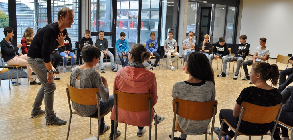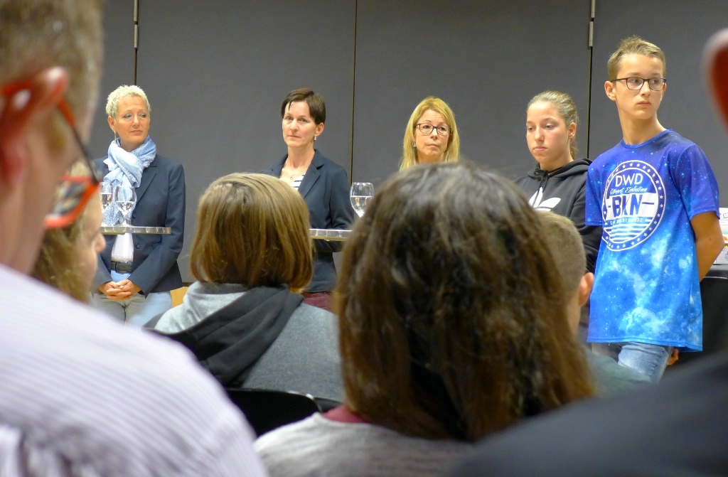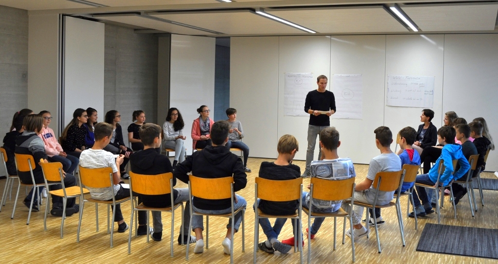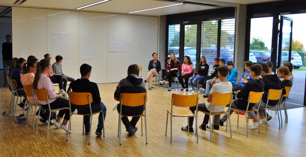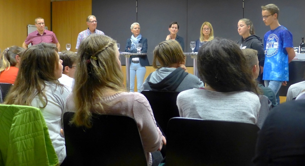Am Abend endete der interessante Tag mit einer Podiumsdiskussion. Gespannt hörten die Schülerinnen und Schüler der 2. ISS und deren Eltern der Gesprächsrunde unter der Moderation von Andreas Andermatt zu.