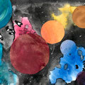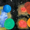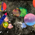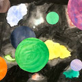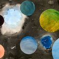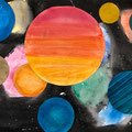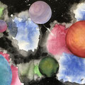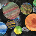 Die Schülerinnen und Schüler der 5. Klasse haben im Bildnerischen Gestalten BG mit einer Mischtechnik aus Malerei; Nass-in-Nass Technik und Collage ein Bild gestaltet, das einen Blick ins Weltall zeigt. Die Himmelskörper und ihre Anordnung sind frei erfunden.