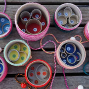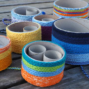 Wenn Luftmaschen mit der Häkelnadel zu langen bunten Schnüren werden, eine farbige Perle die Kordel ziert und ein ausgeklügeltes Landefeld zum Spielen anregt, sind dies die sichtbar gewordenen Kompetenzen und Lernschritte aus dem Themenbereich Spiel/Freizeit im Lehrplan 21. Die Schülerinnen und Schüler haben die Gestaltungselemente Material, Farbe und Form bewusst eingesetzt und die notwendigen Werkzeuge und Geräte sachgerecht gebraucht.