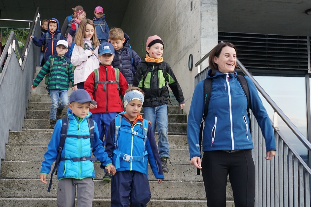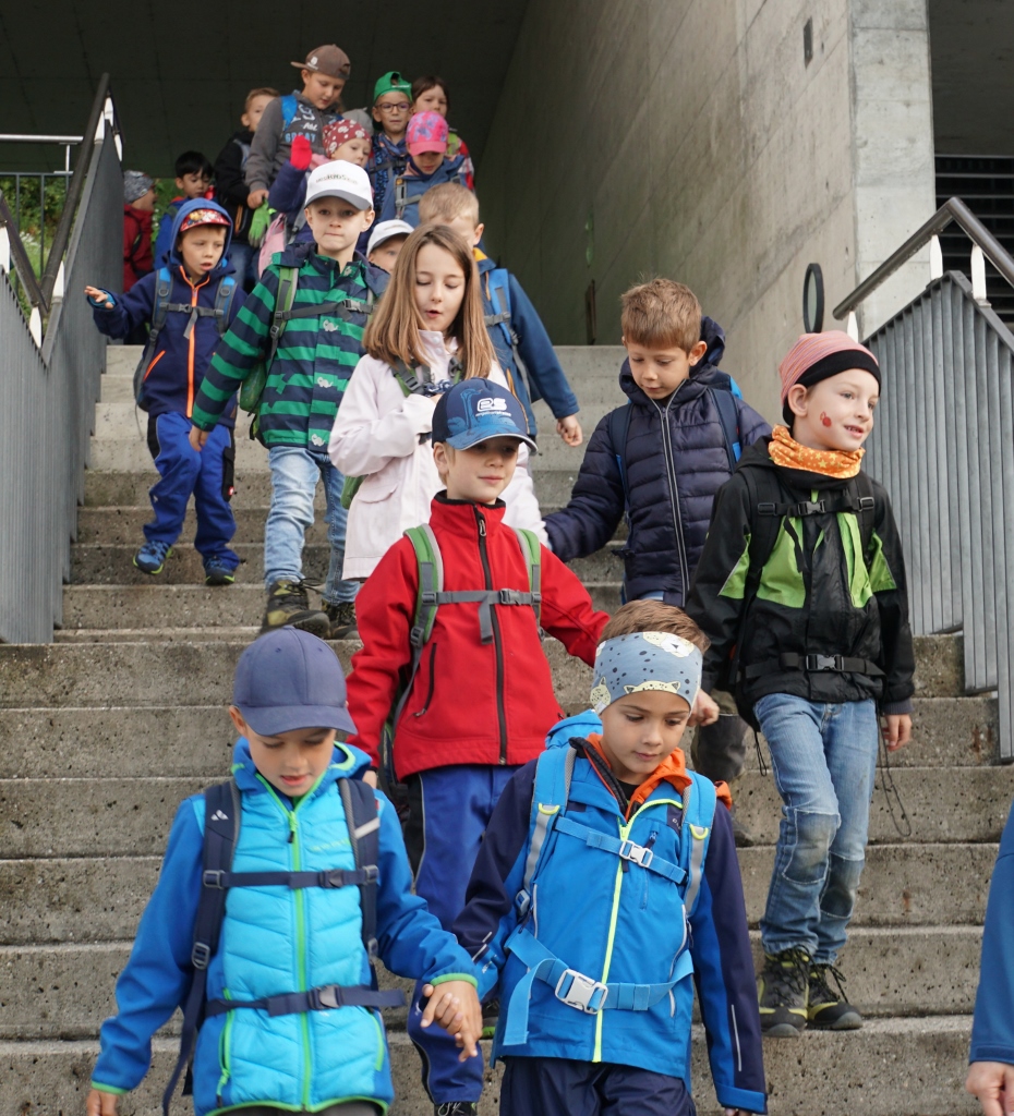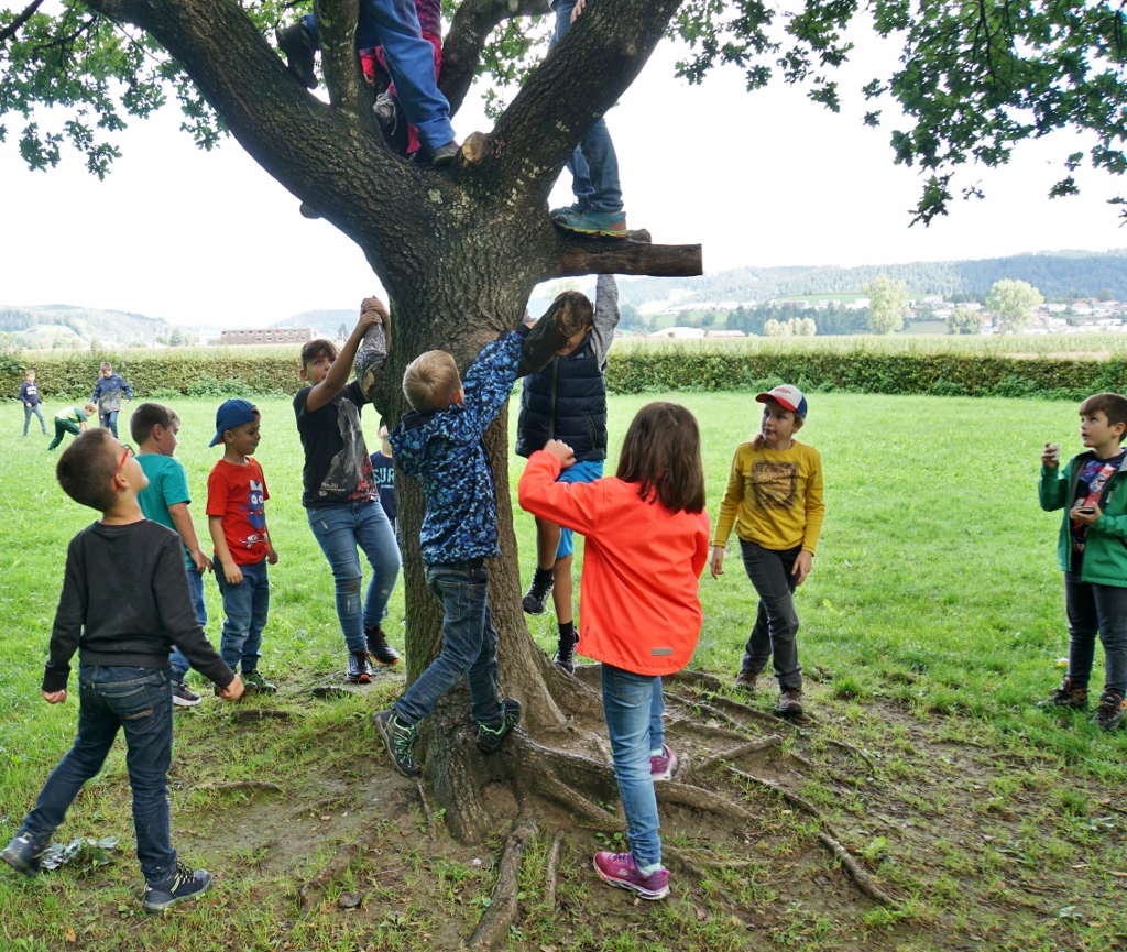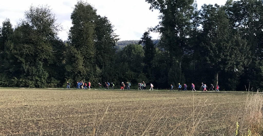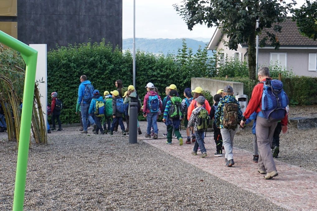 Es war herbstlich frisch und da und dort noch etwas feucht. Gleichwohl nahmen wir guten Mutes den Wandertag in Angriff und hatten auch schon bald die Sonne auf unserer Seite. Je nach Stufe wählten die Lehrpersonen mit ihren Schülerinnen und Schülern eine kürzere oder längere Route. Dazu kamen auch der Zug und das Postauto zum Einsatz. Gegen Mittag trafen nach und nach alle beim schön gelegenen Picknick-Platz an der Luther ein. Die Kinder hatten Zeit zum Bräteln, Spielen, auf die Bäume Klettern und sich mit ihren "Gspändlis" zu verweilen. Die Zeit verging wie im Flug. Auf dem Rückweg ging es zu Fuss zur Bahnstation Nebikon und dann mit dem Zug nach Hause.