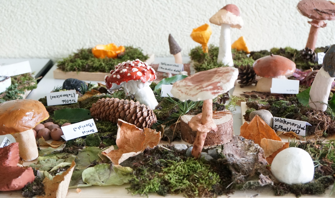 Schule ist nicht nur kopflastig.... Mit viel Elan und Feingefühl haben die Schülerinnen und Schüler der 5. Klasse ihre Hände eingesetzt und mit dem erworbenen Wissen aus dem Fach Mensch und Umwelt einmalige Pilz-Kunstwerke aus Ton kreiert. Da möchte man sich gleich bücken und nach den echt nachgemachten Pilzen greifen… (Pilz-)Hut ab und ein grosses Bravo!