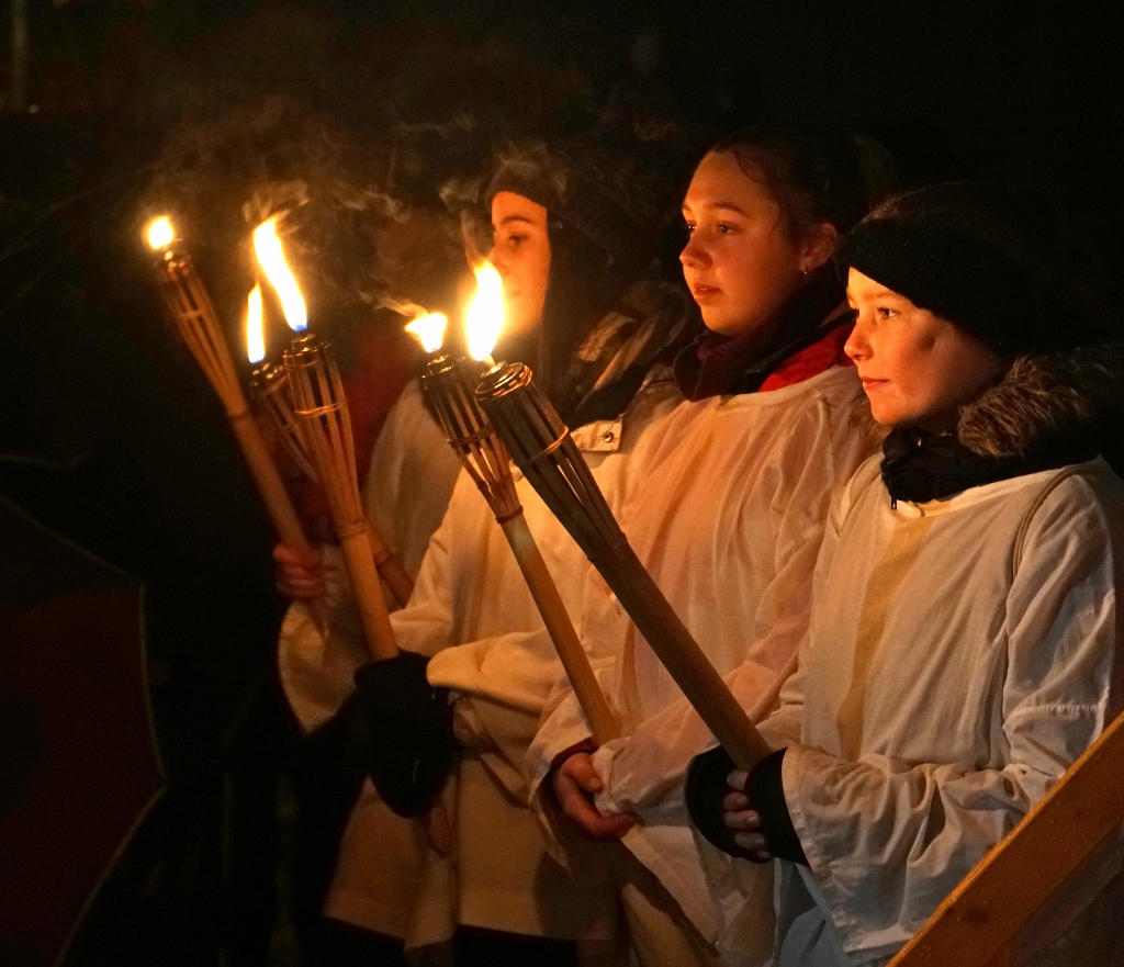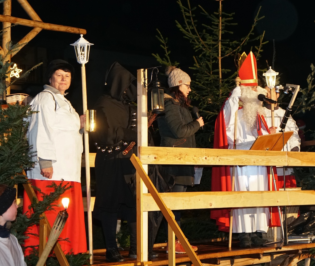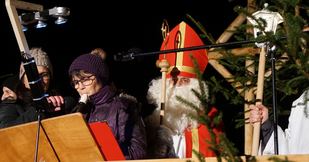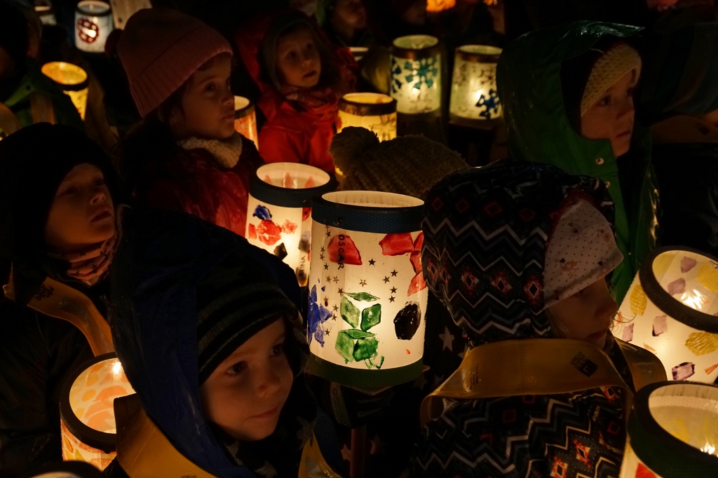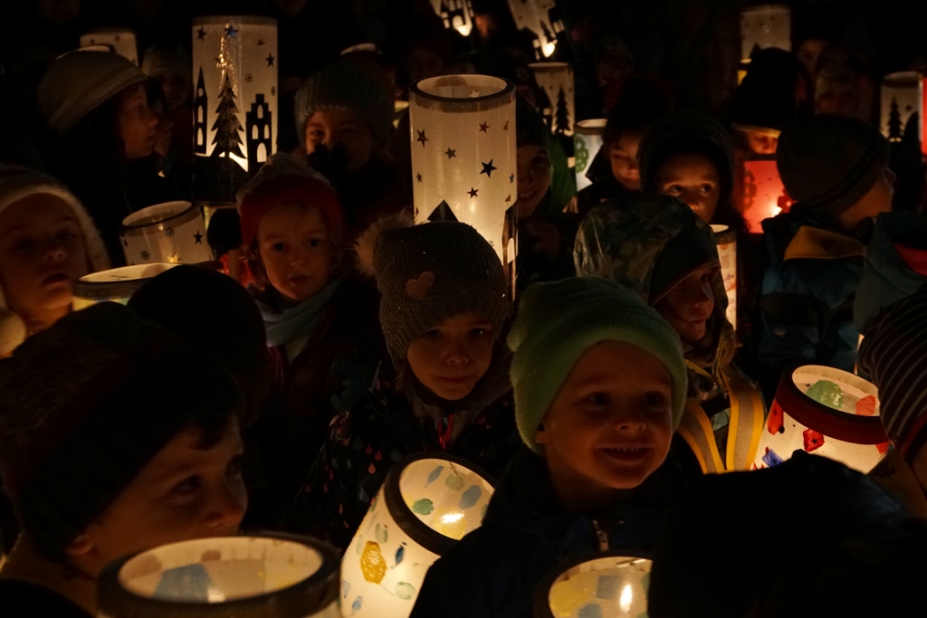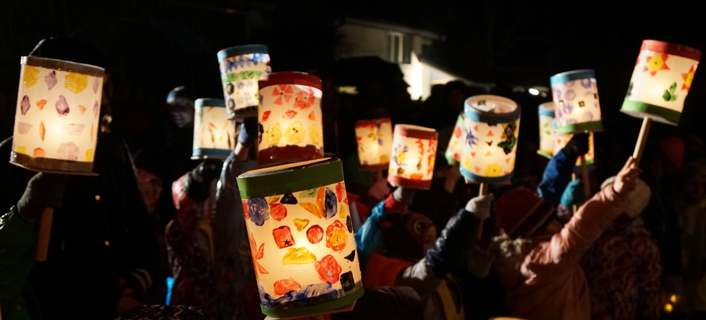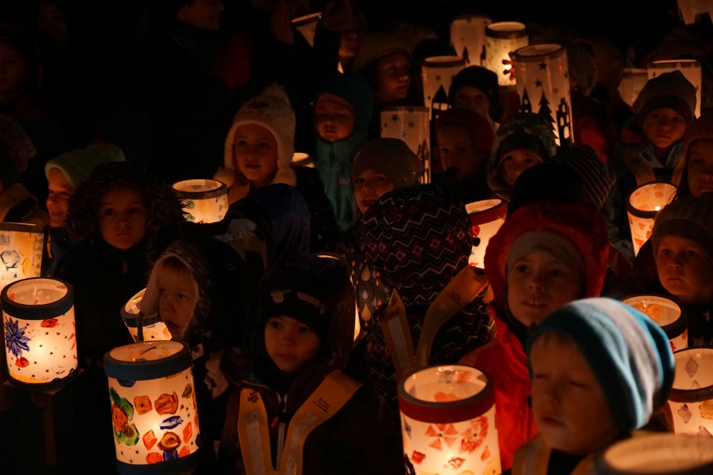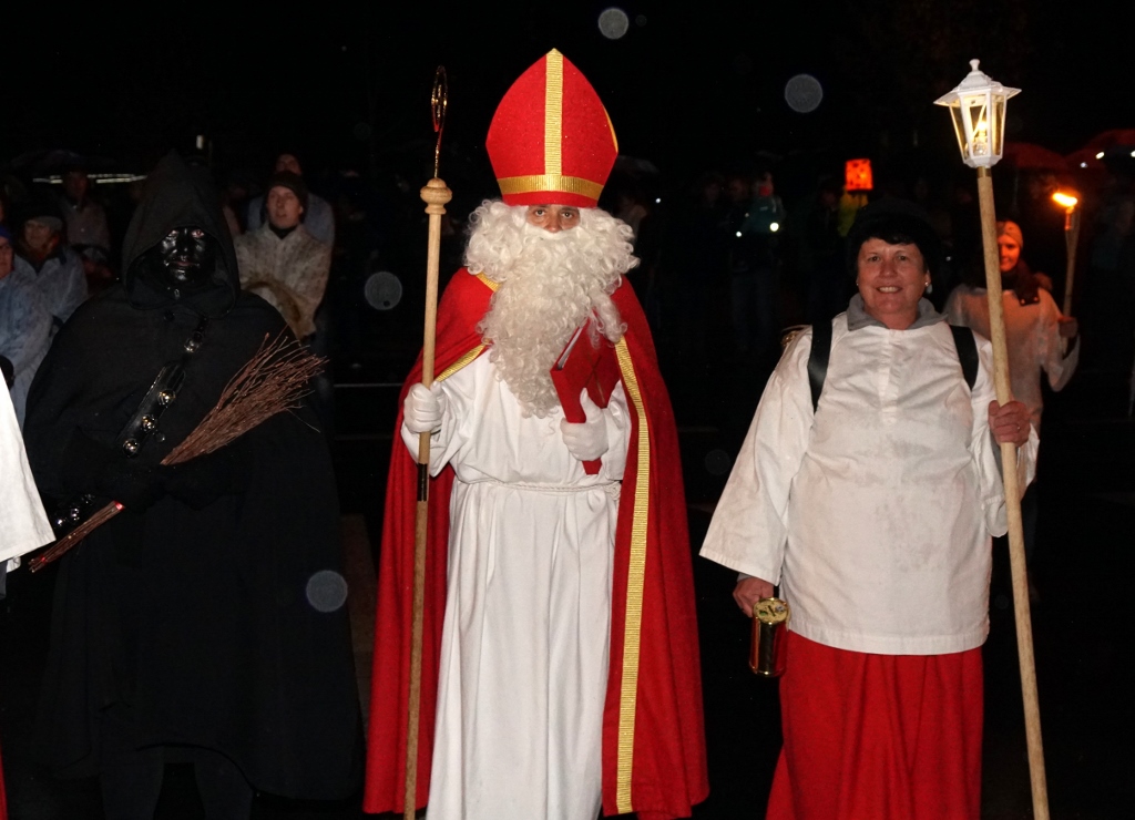 Alle haben es sich gewünscht, der Wolken verhangene Himmel bescherte uns dennoch kein trockenes Wetter zum Samichlauseinzug! Nichtsdestotrotz, die vielen Laternenlichter erhellten die dunkle Dorfstrasse und die Glocken, Trychlen und Geisslechlöpfer füllten die Ohren, als der Samichlaus mit seinem Gefolge vom Schulhaus Wauwil Richtung Kirche zog. Die Kindergartenkinder und Schülerinnen und Schüler der 1.-2. Klasse freuten sich, auf dem grossen Platz vor dem Pfarreiheim der Geschichte des Samichlaus zu lauschen, ihm die leuchtenden Laternen vorzustellen und das bestens eingeübte Samichlauslied zu singen!