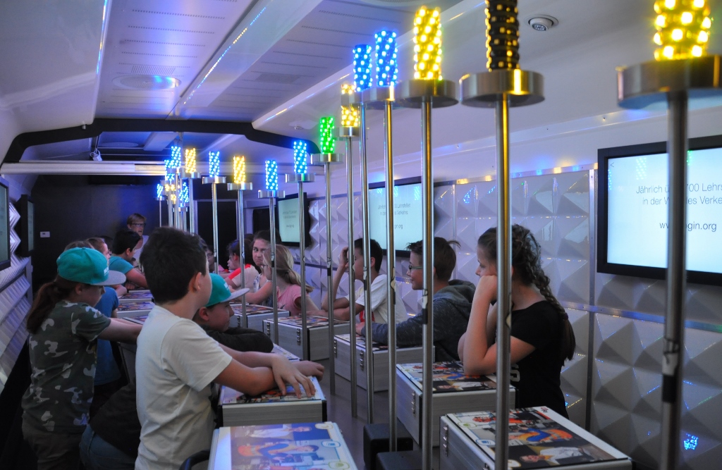 Im SBB Schul- und Erlebniszug des Verkehrshauses Luzern wurden Themen unter dem Motto „Verantwortung“ präsentiert. Inhaltliche Schwerpunkt dieser dreidimensionalen Lernlandschaft sind Förderung der Kompetenzen in Bezug auf den ÖV, Sicherheit, Mobilität, Energie und Berufswahl.
