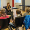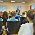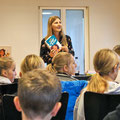 Im Rahmen der Schullesungen "Literatur aus erster Hand", fand am Montag, 27. Oktober 2025 die Lesung für den Zyklus 2, 3. – 6. Primar statt. Martina Blunschy empfing am Vormittag die 5. und 6. Primar und am Nachmittag die Lernenden der 3. und 4. Primar im Saal des Pfarreiheims. Die junge Autorin verstand es, mit viel Abwechslung und tollen Inputs die Kinder abzuholen und in die Welt des Bücherschreibens mitzunehmen. Martina Blunschy las aus ihrem ersten Kinder- und Jugendbuch «Da pfeif’ ich drauf!» verschiedene Kostproben. Dabei lernten die Schülerinnen und Schüler das Mädchen Medita kennen. Medita ist witzig, mutig und manchmal sogar ein bisschen frech…😉