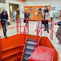 Ein Highlight war die Besichtigung der Turbine im Reuss-Kanal. Nach vorgängiger Erklärung der Bauweise des Kraftwerks, konnten alle Lernenden das Kraftwerk begehen. Über eine Leiter durften sie zu der lauten und stark vibrierenden Anlage hinabsteigen und so die Kraft der gewaltigen Menge Wasser, die dort ständig vorbeiströmt, erahnen.