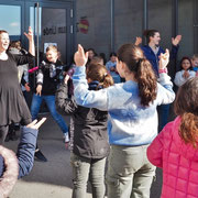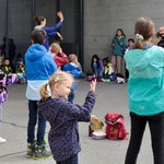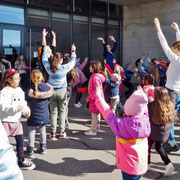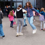 Die Tänze werden teilweise in den MuB Lektionen oder in den Musik- und Sportlektionen eingeübt und dann während der Vormittagspause miteinander getanzt. Das macht richtig Spass!
